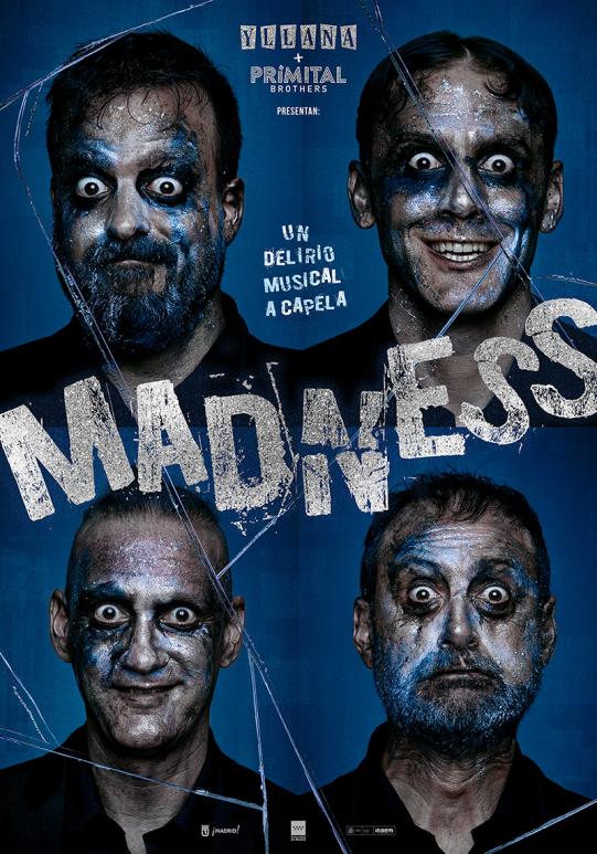Prepárate para una experiencia teatral única, salvaje y sorprendente. "Madness" es el nuevo delirio escénico de Yllana, en colaboración con los increíbles The Primitals, donde la comedia gestual más explosiva se une a las voces a capela más impactantes. Un psiquiátrico. Cuatro pacientes. Una historia disparatada que mezcla humor, crítica, virtuosismo vocal y momentos absolutamente absurdos… ¡pero brillantes! “Madness” es un viaje a la locura más divertida, con una puesta en escena afilada, original y absolutamente adictiva.